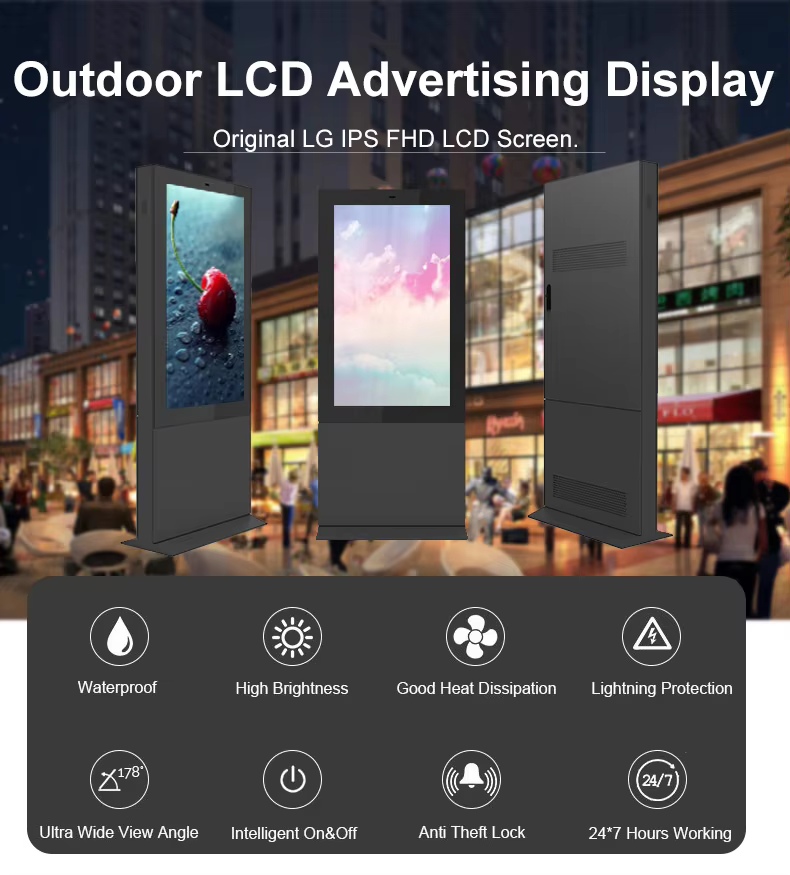 Förutom denna 49 55 65-tums utomhus AG AR Glass 4K-dubbelsidig digital skyltning med 4G, är vi TopAdkiosks en LCD-produkter tillverkare med starka forskningsfunktioner, företaget sedan dess inledande, som är engagerade i att tillhandahålla hårdvara och mjukvara, bedriver en win-win-samarbeten för alla kunder, är för närvarande en av de ledande professionella multimetiska uppvisningen av terminal tillverkare i Kina. HTDSD fokuserar huvudsakligen på reklammaskiner, pekskärm förfrågningsmaskiner, elektroniska whiteboards, multimedia nätverksinformationssystem och andra terminal displayprodukter.