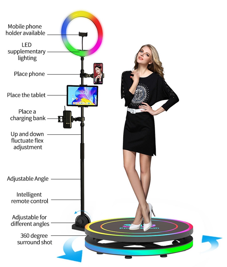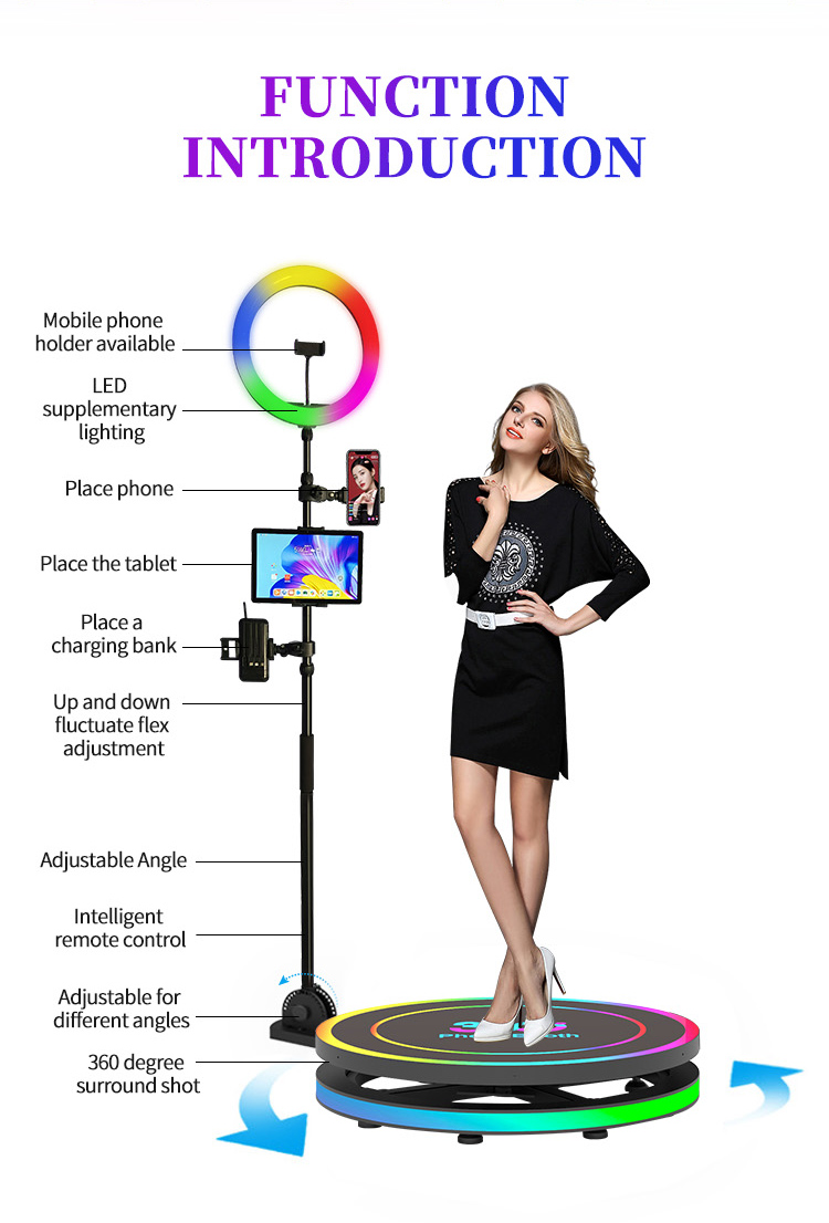 TopAdkiosk 360 Photobooth selfie artefakt, II Generation anpassad efter att ha samlat alla fördelar. Inget annat val för dina bröllop, fester, olika aktiviteter, gör att människor är den verkliga popstjärnan under denna Magic 360 roterande videoklassupplevelse, där alla avancerade paparazzi bara är fokuserade på dem för att ge dem en 360 graders bilder, alla bundna med alternativ för slo-mot, bild, video eller live GIF. Efter att ha delat dem på din sociala medias kanal, bara väntar på beröm och gillar!