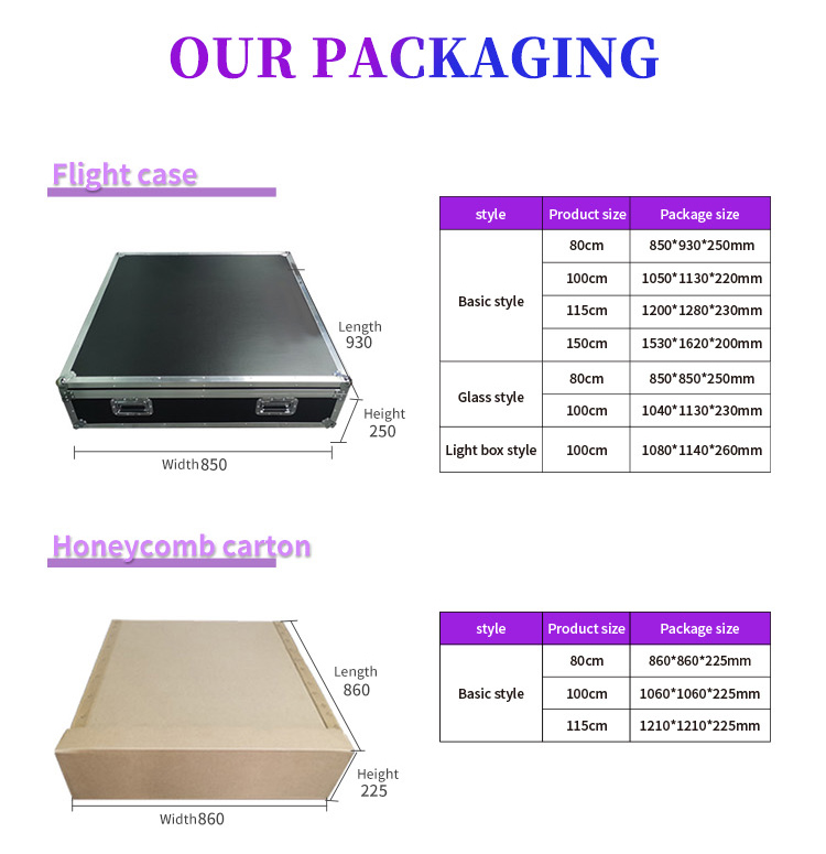 | Materiel | Tempererad glasplattform + LED -remsor + lyftare | Plattformsstorlek | 100 cm |
