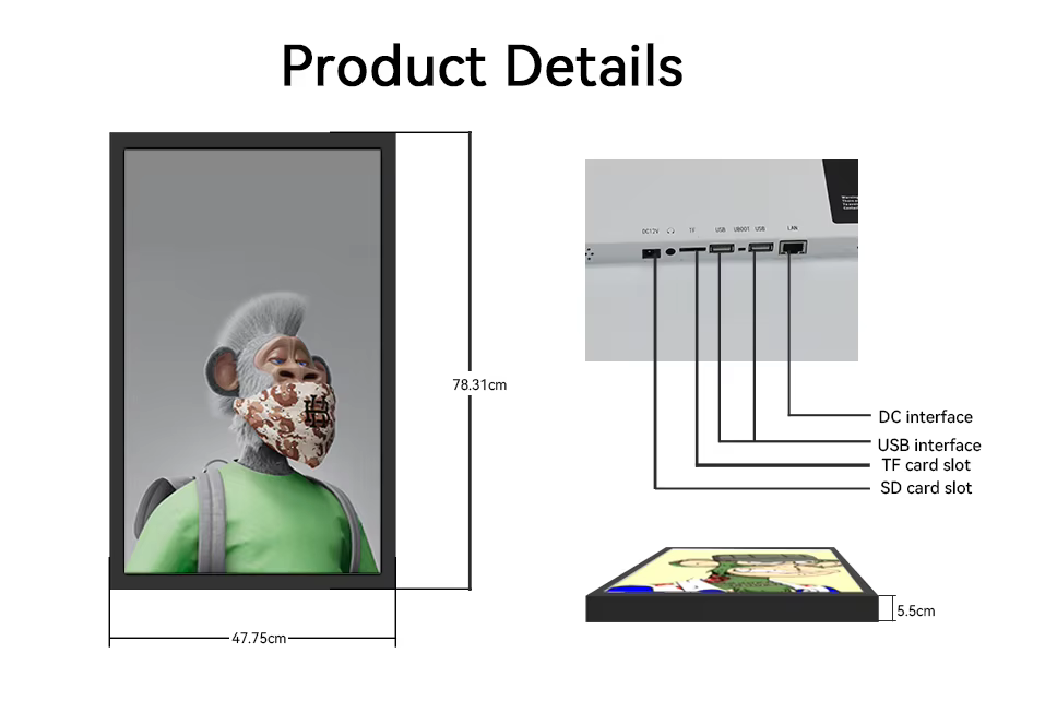 4. Hur många storlekar på NFT -displayramen? ① Regelbunden form: Rektangel 10.1 ", 21.5", 32 ", 43", 55 "