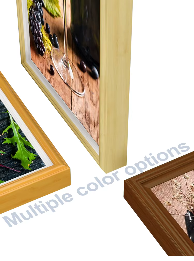 8. Hur många färger på denna NFT -skärm? Träramfärger: svart, vit, björk, mahogny, anpassad färg.